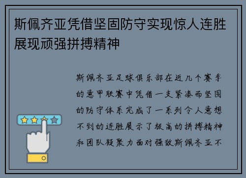 斯佩齐亚足球俱乐部在近几个赛季的意甲联赛中,凭借一支紧凑而坚固的防守体系,完成了一系列令人意想不到的连胜,展示了极高的拼搏精神和团队凝聚力。面对强敌,斯佩齐亚不仅仅依赖进攻端的火力,更通过合理的防守布局和团队合作,牢牢稳固了后防线,成功实现了一波又一波的连胜,尤其是在面对一些强队时,展现了强大的韧性和斗志。本文将从四个方面深入分析斯佩齐亚如何凭借坚固防守取得连胜,并体现出顽强拼搏的精神:首先是球队的防守策略与战术布局;其次是球员个人的防守能力及精神面貌;接着是球队的战术适应能力与应变能力;最后是球队的集体拼搏精神与团队凝聚力。通过这四个方面的分析,我们将全面了解斯佩齐亚这支小球队如何在意甲赛场上打破偏见、打出惊人的连胜纪录,并展现出不容小觑的竞争力。